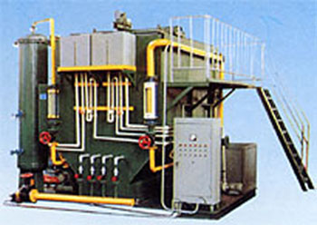 本設備的工作方法屬于加壓溶氣氣浮法,其工作原理:在一定條件下,將大量的空氣溶于水,形成溶氣水,作為工作介質(zhì),通過釋放驟然減壓,快速釋放,產(chǎn)生大量的微細氣泡,粘附于經(jīng)過混凝反應后的廢水中的"礬花"上,使絮體上浮進行清除。